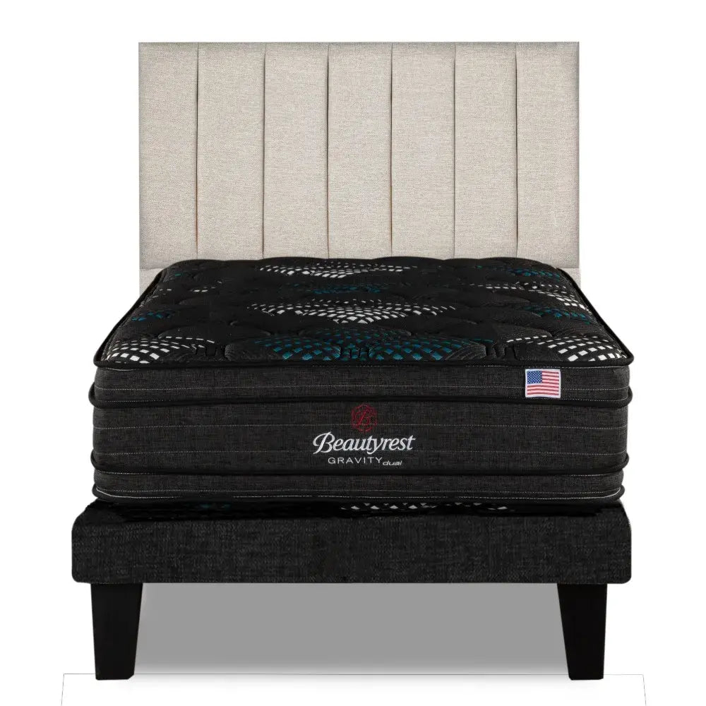 Cama Europea Beautyrest Gravity Dual 1.5 Plazas Box + Respaldo Tibet Arena