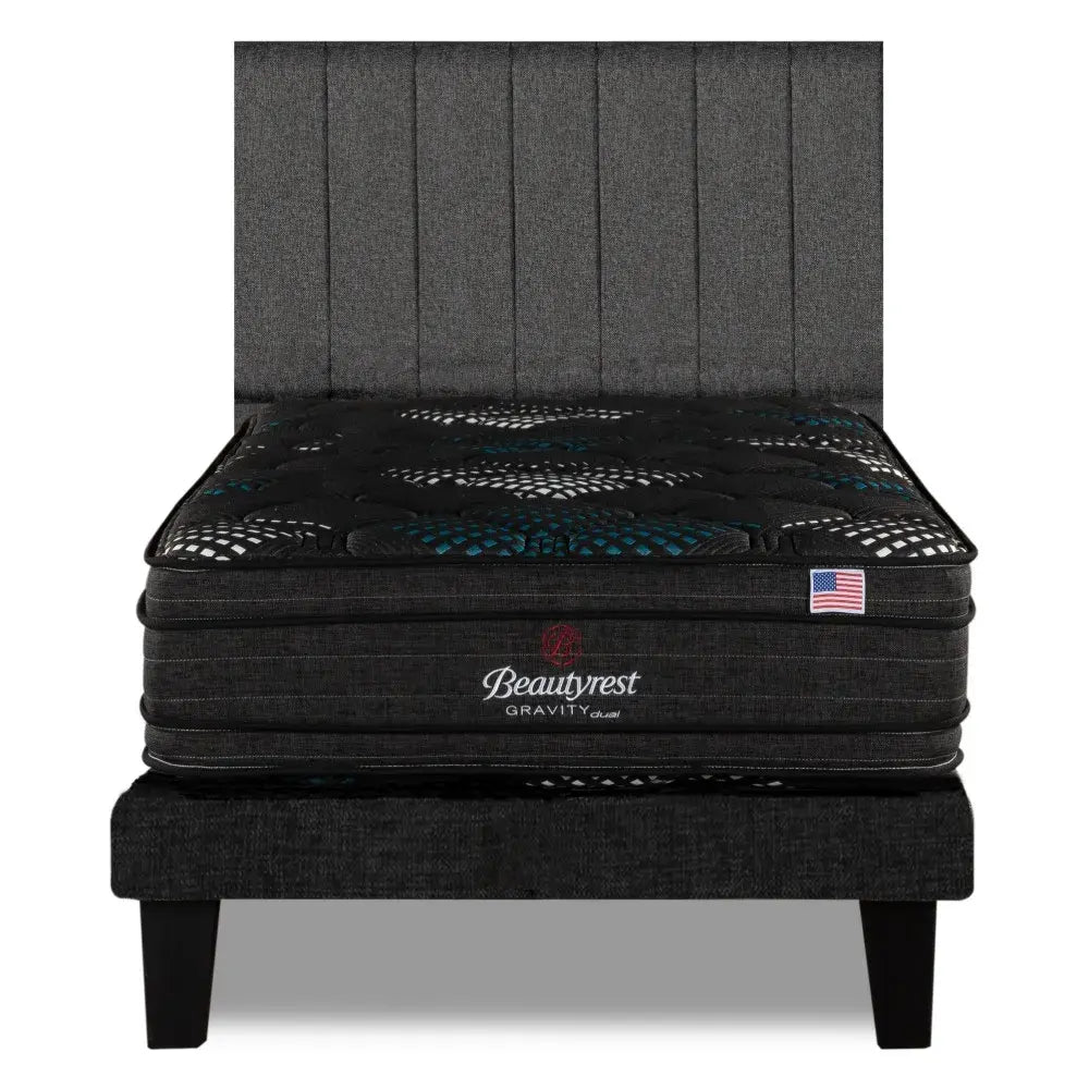 Cama Europea Beautyrest Gravity Dual 1.5 Plazas Box + Respaldo Tibet Gris