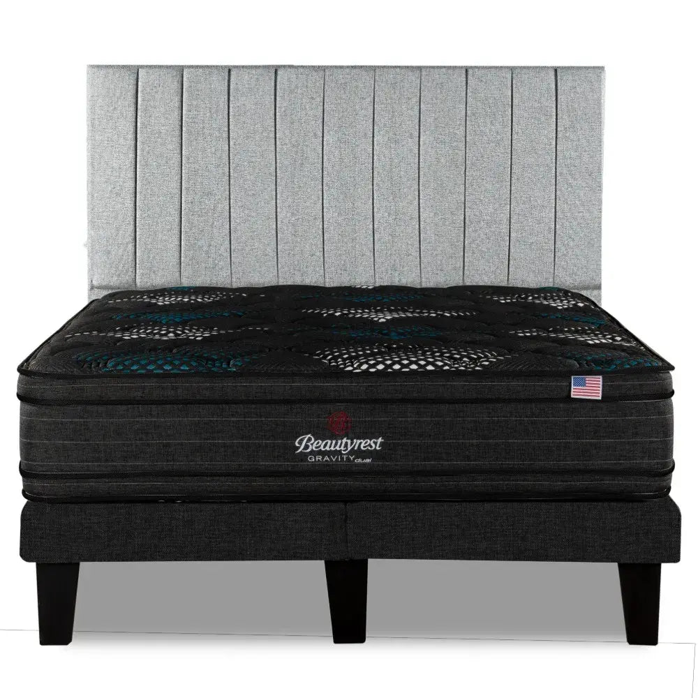 Cama Europea Beautyrest Gravity Dual 2 Plazas Box + Respaldo Tibet Plata