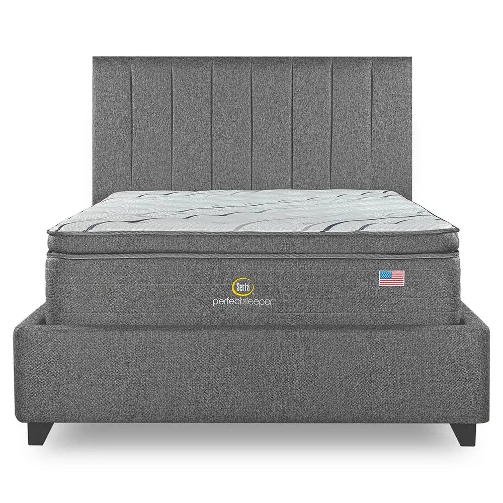 Cama Europea Bignest Serta Perfect Sleeper 2 Plazas Box + Respaldo Tibet Gris