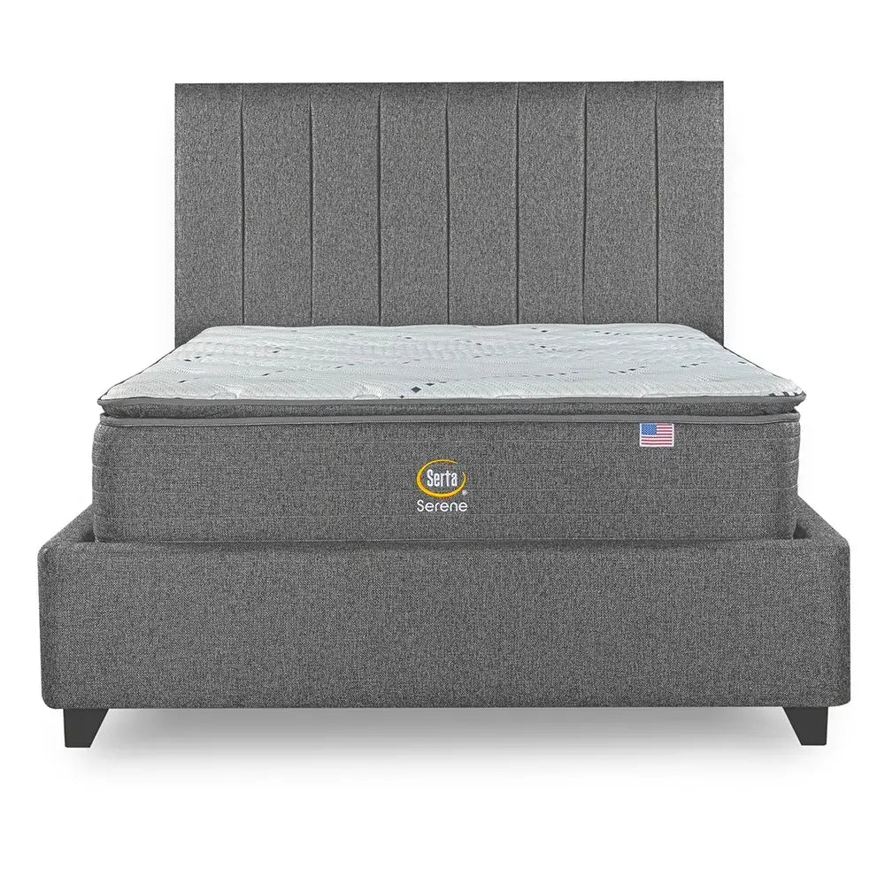 Cama Europea Bignest Serta Serene King + Respaldo Tibet Gris