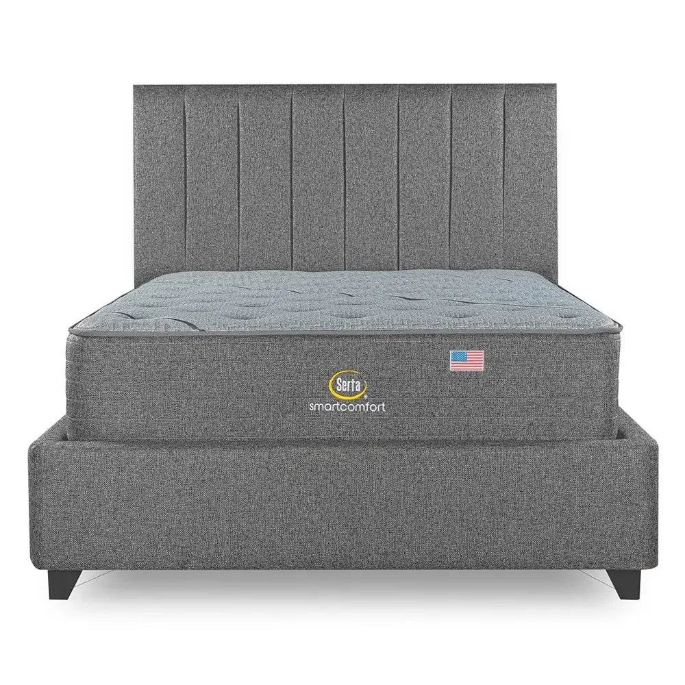 Cama Europea Bignest Serta Smartcomfort 2 Plazas Box + Respaldo Tibet Gris