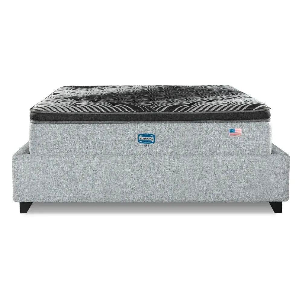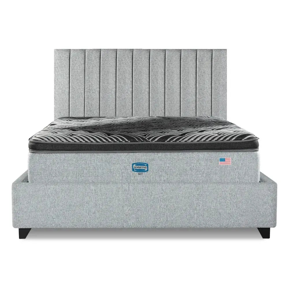Cama Europea Bignest Simmons Sky 2 Plazas Box + Respaldo Tibet Plata
