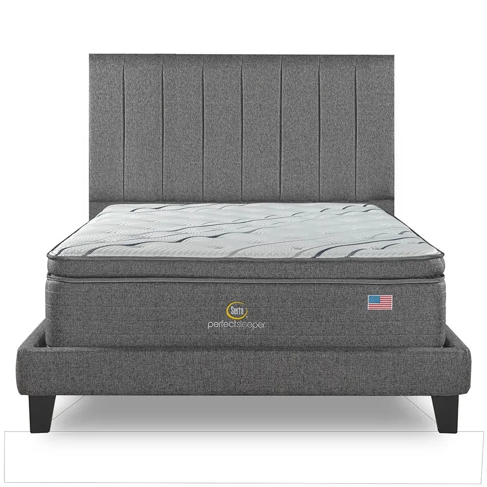 Cama Europea Lownest Serta Perfect Sleeper 2 Plazas Box + Respaldo Tibet Gris