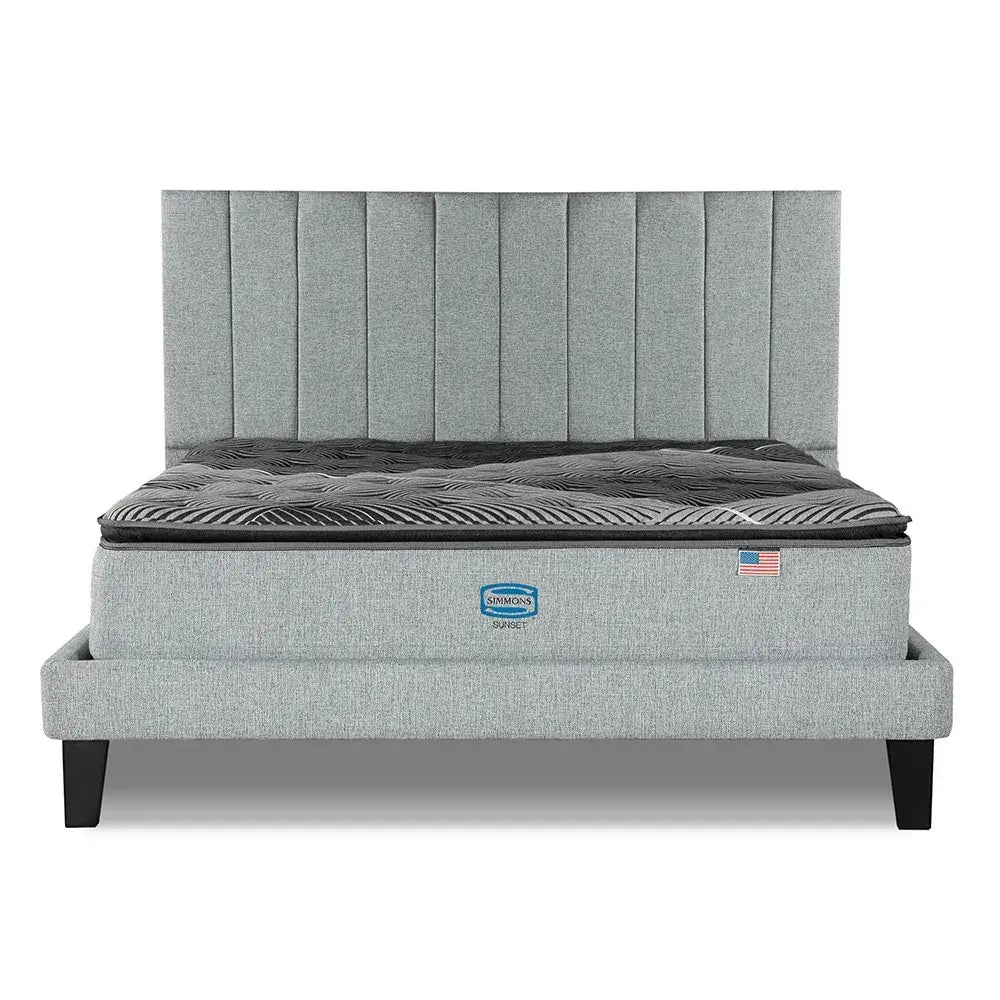 Cama Europea Lownest Simmons Sunset 2 Plazas Box + Respaldo Tibet Plata