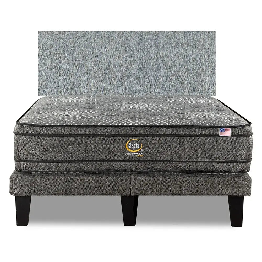 Cama Europea Serta Advantage Dual 2 Plazas Box + Respaldo Praga Plata
