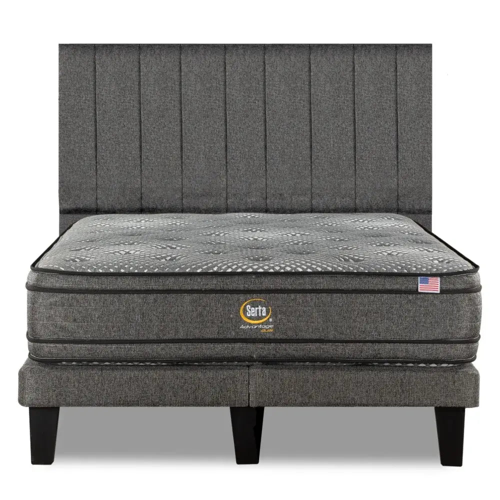 Cama Europea Serta Advantage Dual 2 Plazas Box + Respaldo Tibet Gris