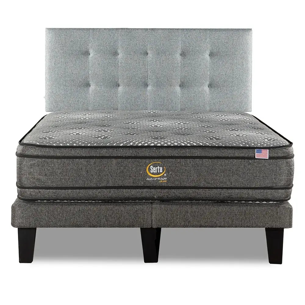 Cama Europea Serta Advantage Dual 2 Plazas Box + Respaldo Urban Plata