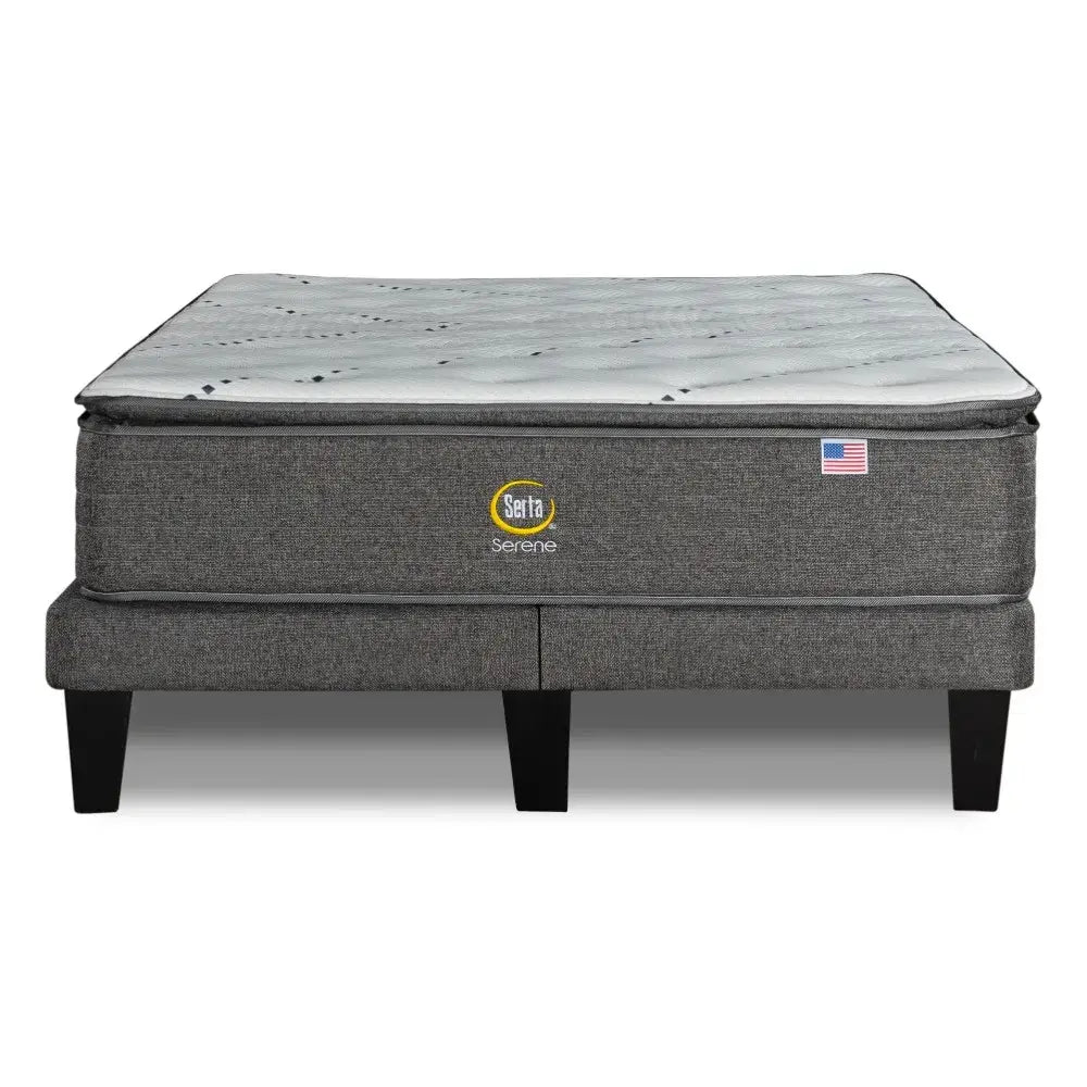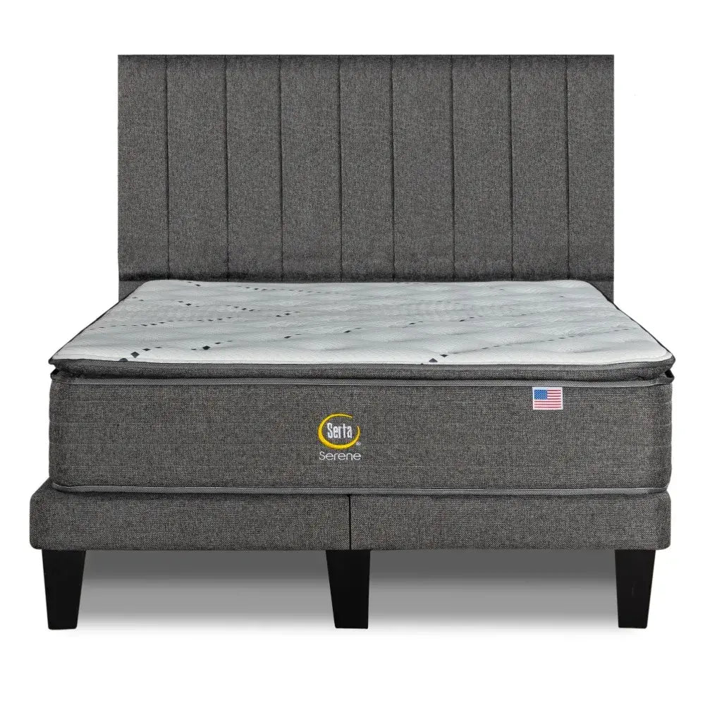 Cama Europea Serta Serene 2 Plazas Box + Respaldo Tibet Gris
