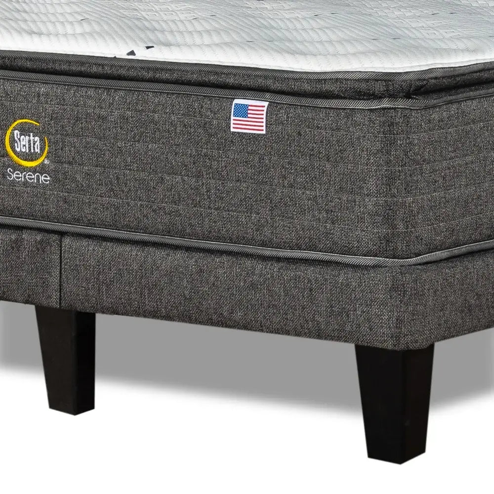 La cama Serene de Serta está cubierto por un suave, fresco y moderno tejido de punto. Posee acolchado superior con espuma HyperSoft y cuenta con un núcleo de resortes Pocket Multizona, que proporciona un soporte activo en todos los puntos del cuerpo según sea necesario. Esta configuración ofrece un ajuste ergonómico superior, que no transmite el movimiento, ideal para dormir en pareja y lograr un descanso realmente de lujo.