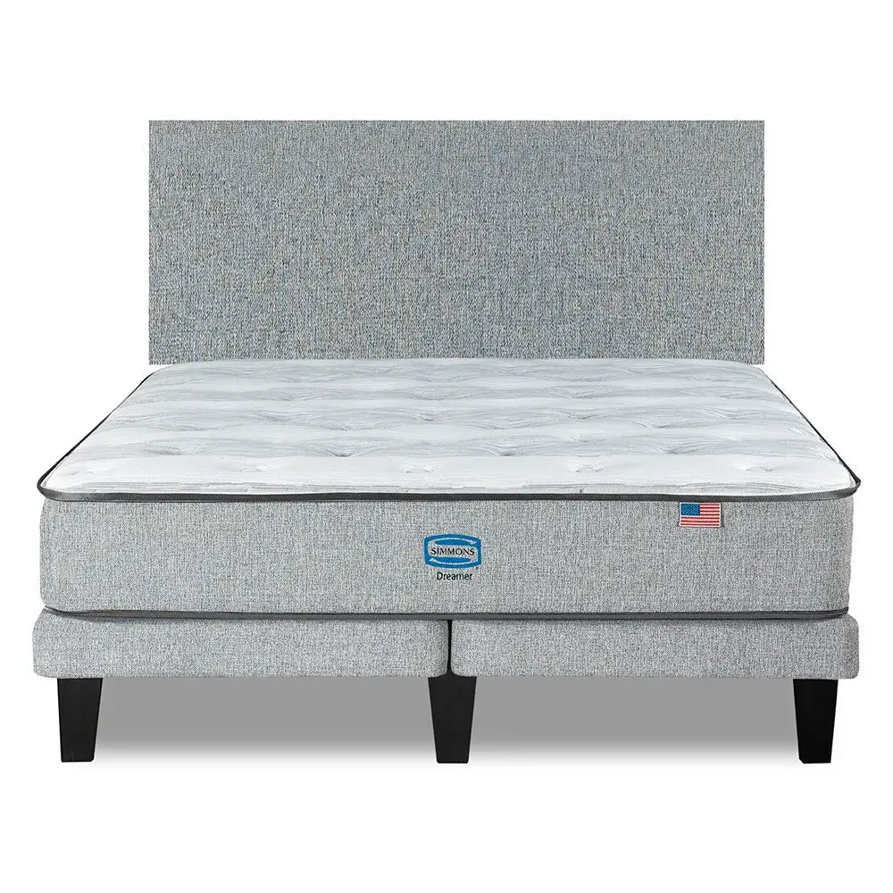 Cama Europea Simmons Dreamer 2 Plazas + Respaldo Praga Plata