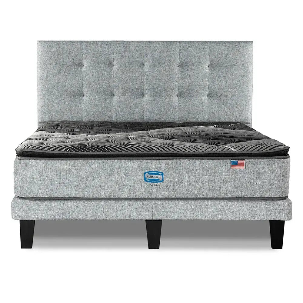 Cama Europea Simmons Sky 2 Plazas Box + Respaldo Tignes Plata